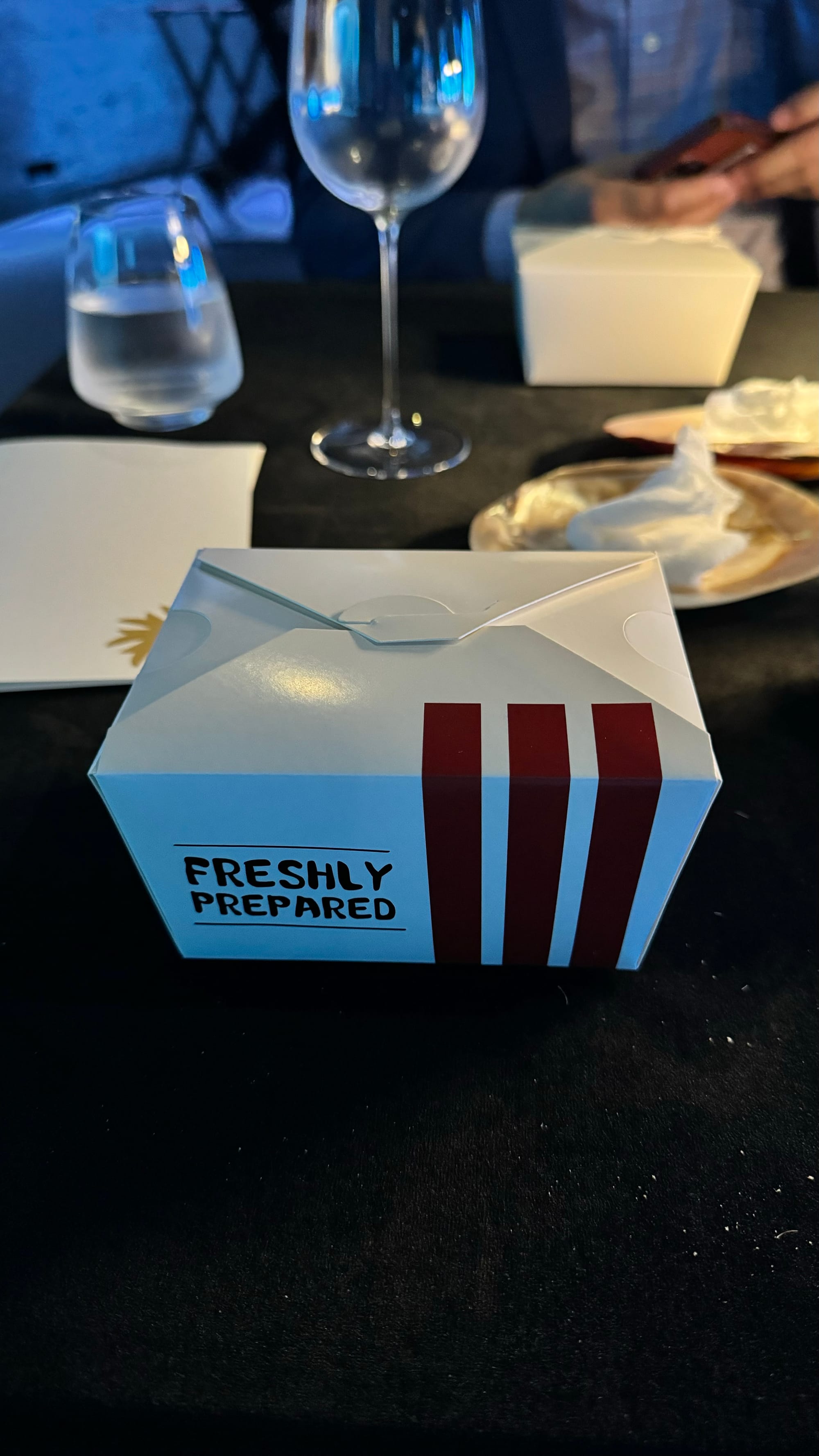 And the answer to the riddle that the balloon revealed, was no surprise: CRAB. The next course was KFC.. Korean Fried Crab. Crab meat formed in a chicken wing with a delicious Korean sauce.