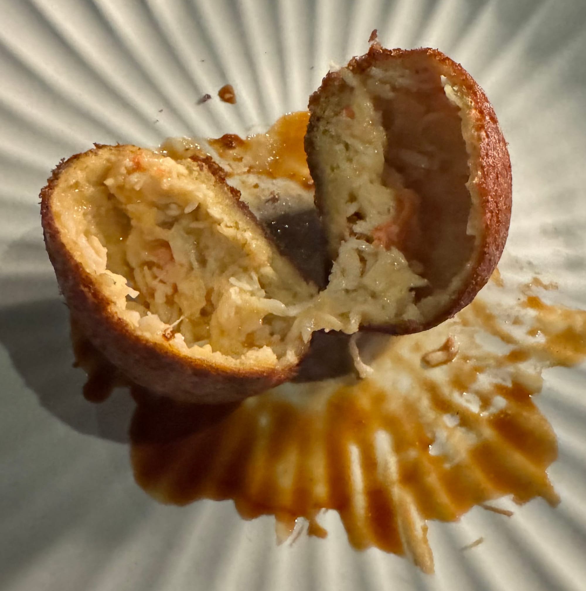 This dish was also accompanied by a bread ball that was filled with crab meat and had a Yorkshire Pudding consistency. We were told to use it to wipe up the sauce that we eagerly did.