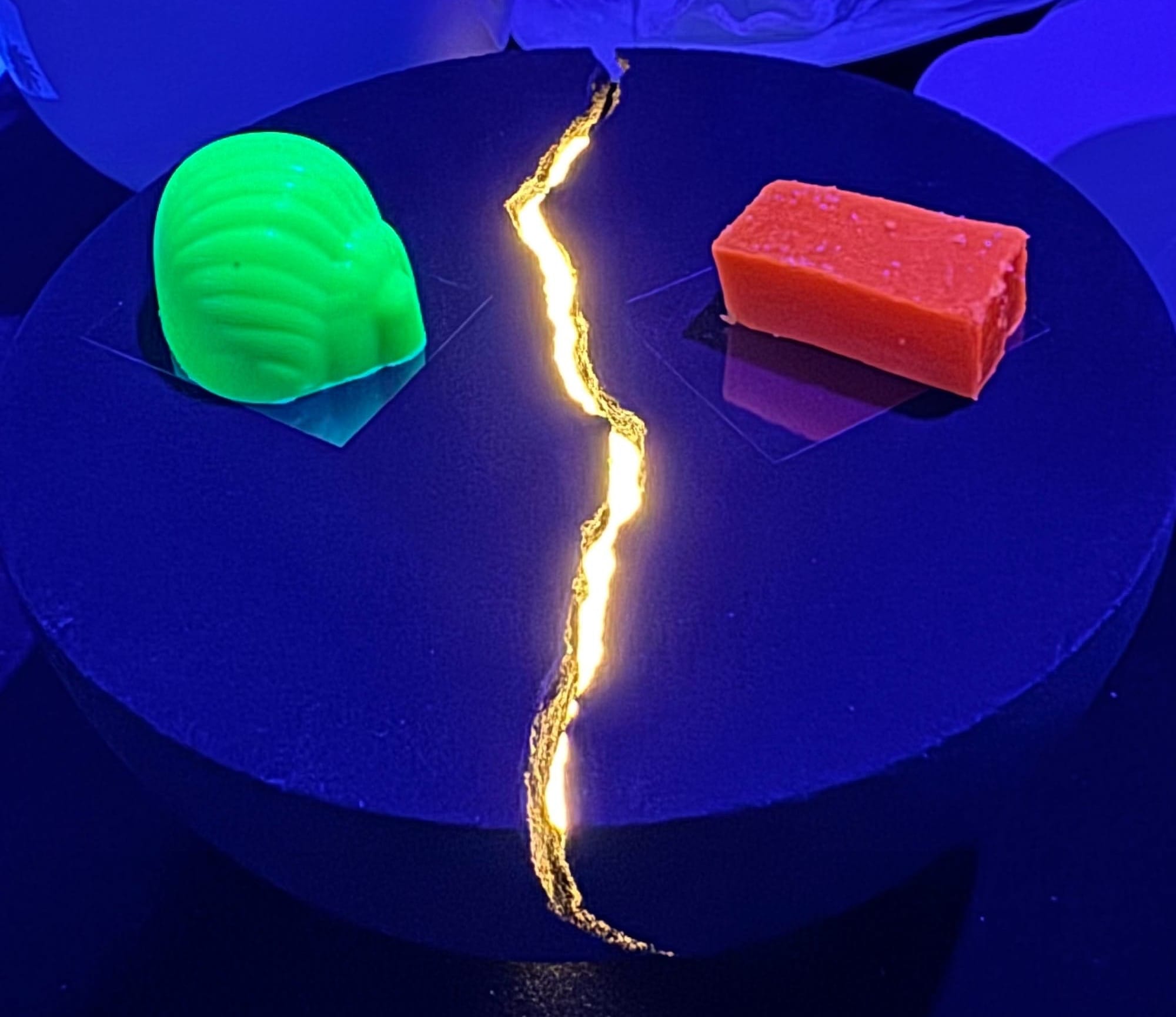 And finally our last course, Cinnamon Caramel BonBon and Mango Pate de Fruit. This was called Lights… and with this course the lights were turned off and the black lights were turned on. The dish that they came on was so coool too, I couldn’t stop playing with it… it pulled apart to show light through a crack. Brilliant!