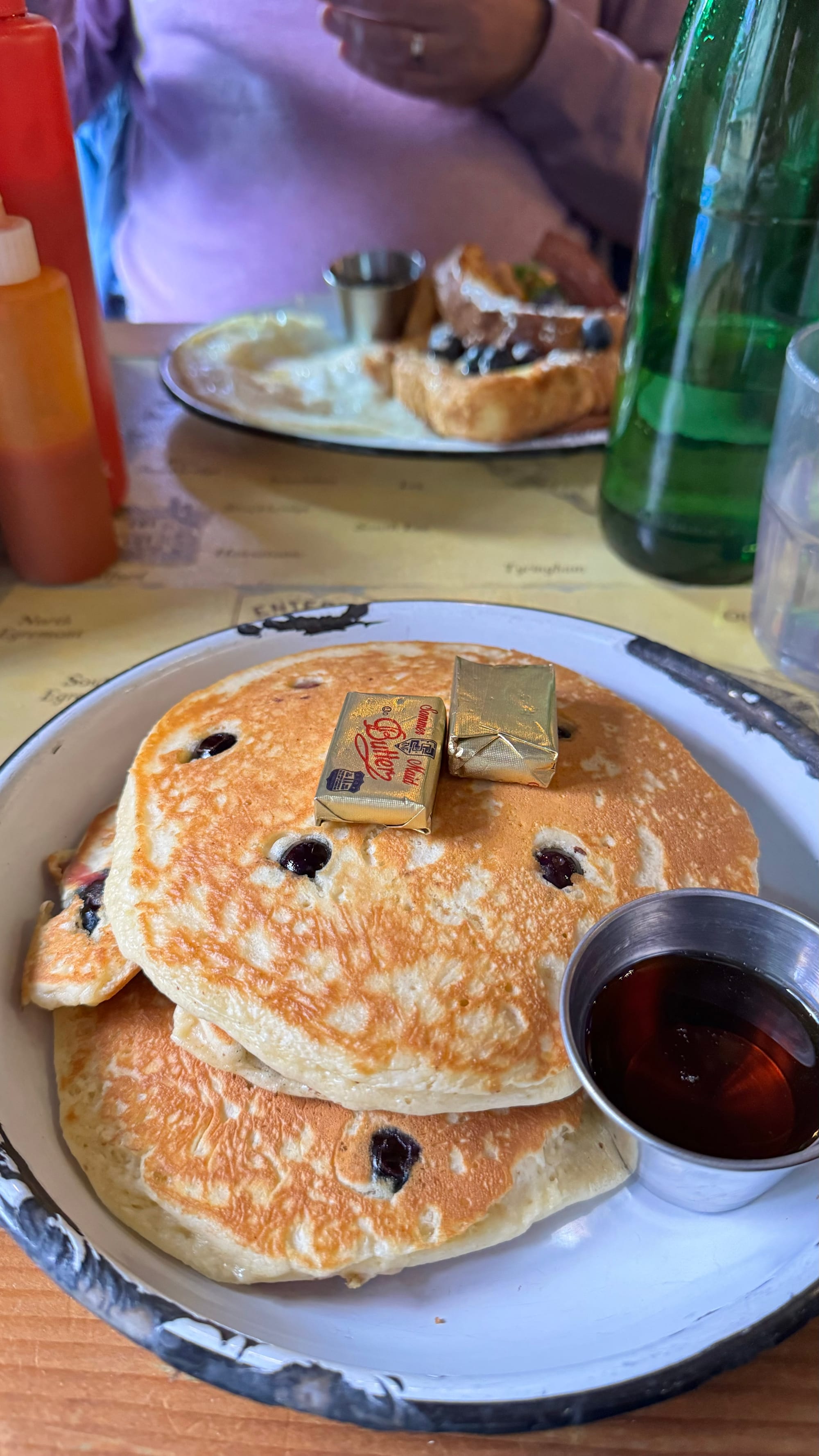 A cute breakfast place somewhat close to us for a reliable breakfast and great service. I went healthy, I added blueberries to my pancakes.