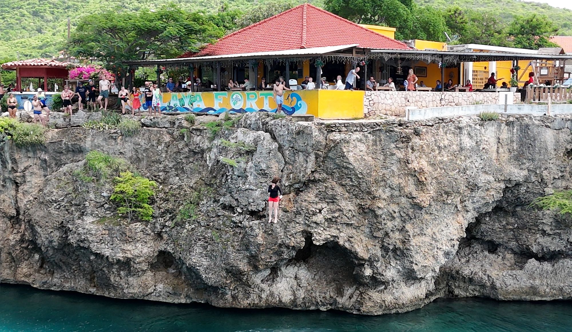 We headed to a parking lot after the first dive where the dive center provided us with a sandwich, which was actually pretty damn good. Some opted to cliff dive (50ft.), I opted to save my back and just drone people jumping.