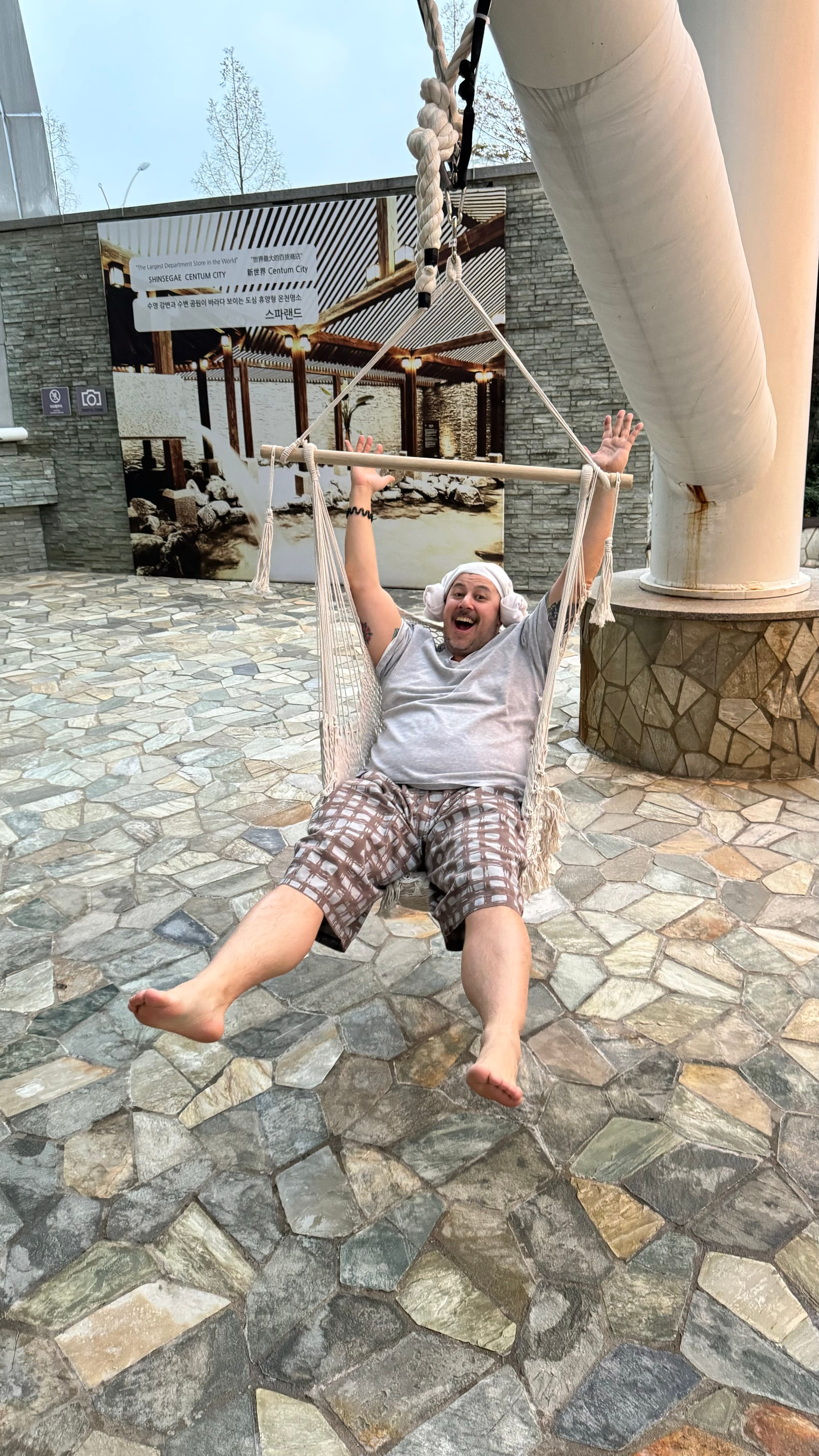 I sit here in my Princess Leah headress in the relaxation room at Spa Land in Bosun Korea. I have a belly full of DIY Ramen and I just finished another round of a water rotation from cold plunge to hot tub.